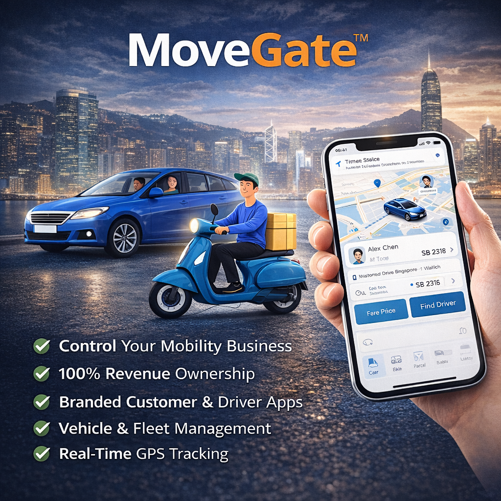 Own Your Mobility & Delivery Operations White-label ride & delivery system—customer app, driver app, full control.