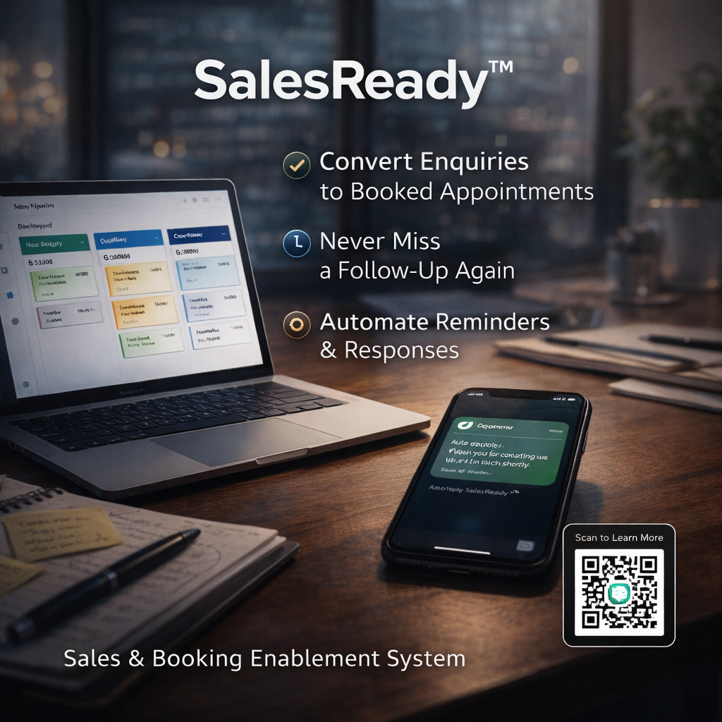 SalesReady™ is the core conversion engine for service-based SMEs. It turns inquiries into confirmed, attended sales meetings—with structure, automation, and visibility.